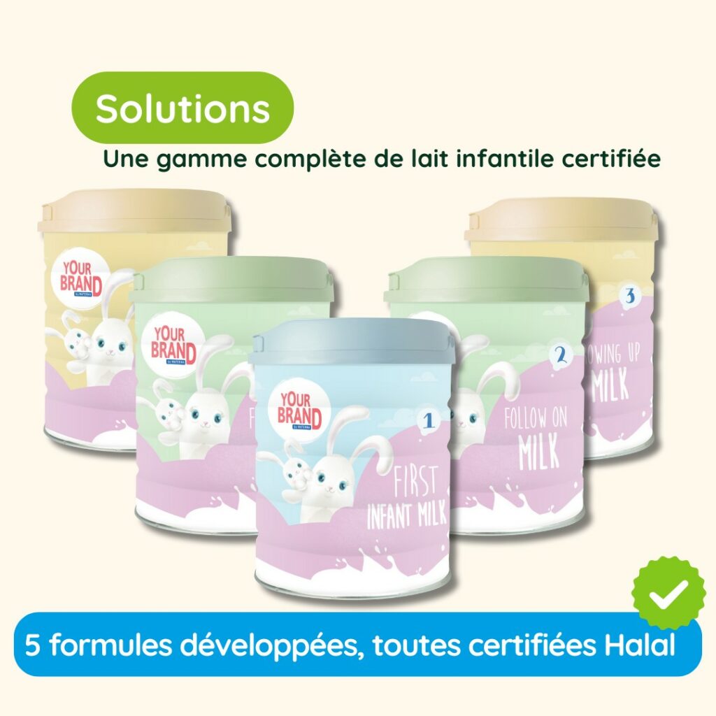 Nous avons construit des partenariats historiques avec les marques nationales du lait infantile, et accompagnons également les marques de distributeurs (MDD) dans la création de gammes de lait adaptées :
